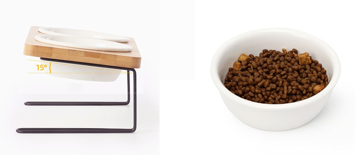 FOOD GRADE CERAMIC BOWLS - (SGS-Zertifizierung, Download von der Produktinformationsseite)Keramisches Material ist robust, rostfrei und für Katzen unbedenklich. Und der natürliche Bambushalter ist mit Lack beschichtet, der wasserdicht und langlebig ist.