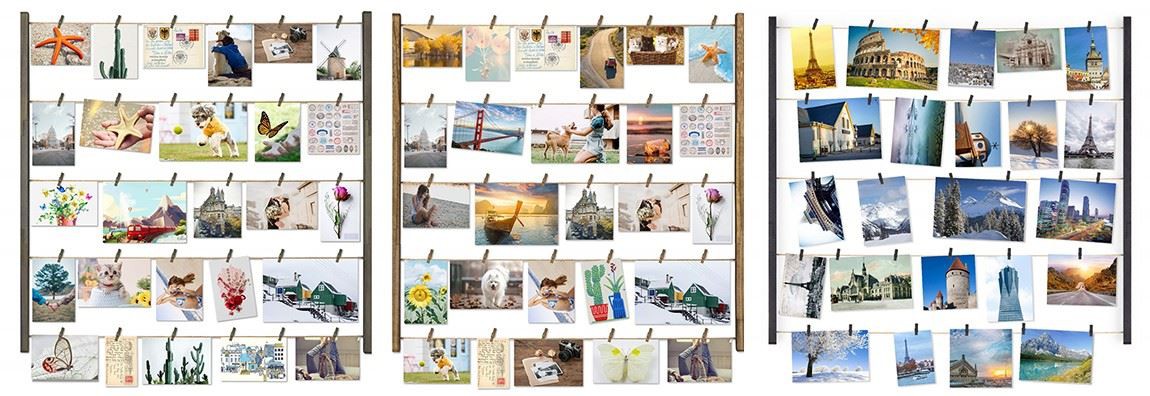 Flexible Fotocollage - Im Gegensatz zu anderen können die Bilder, Postkarten und Gemälde direkt an die Schnürschnüre dieses rustikalen Wandbilderrahmens gehängt werden, sehr einfach und bequem für Sie, um sie jederzeit zu wechseln